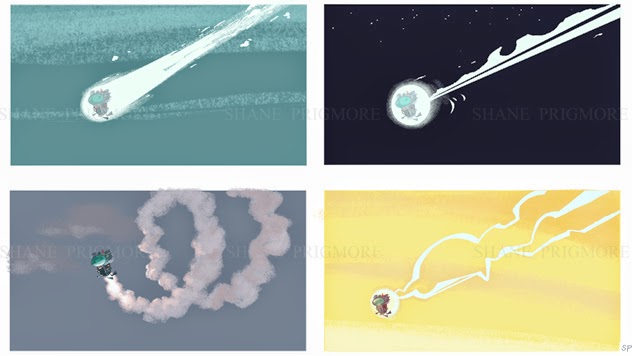 So after I presented this rough series of WABAC images, we actually realized it as a fully animated sequence to eventually present to the studio (More on that in a moment).
