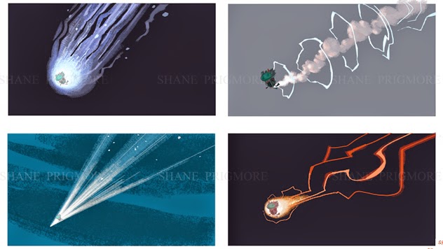 Phase 07: What would it look like when the WABAC re-assembled, and re-entered? These were a few thumbnail images I created to explore some visual thoughts for re-entry…